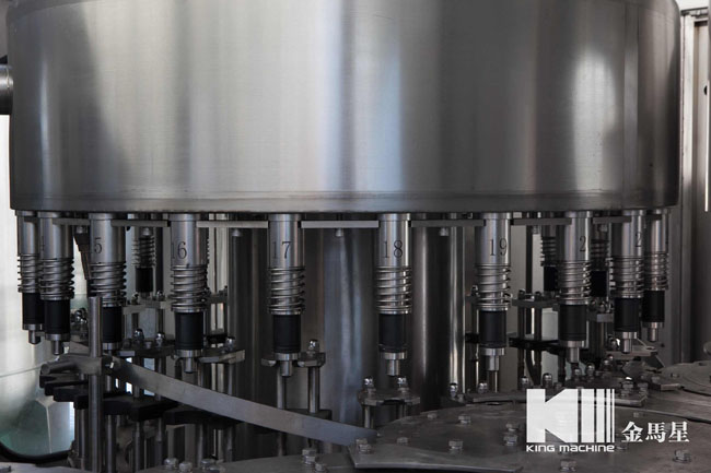 飲用水灌裝機集沖洗、灌裝、旋蓋于一體,全過程自動化運行,主要適用礦泉水、純凈水等不含氣飲料的沖瓶、灌裝、封口連續作業。本機大部分電器系統零件均采用國外優良產品,所有與液料接觸的地方均采用優質的不銹鋼材料制作,主關鍵部件采用數控機床精密加工, 整機光電檢測各部件的運行狀況,無瓶不灌裝,無瓶不送蓋,自動化程度高,操作簡易,具有耐磨、穩定、故障率低等特點,產品質量處于行業前列,是新老飲料投資者的選擇。