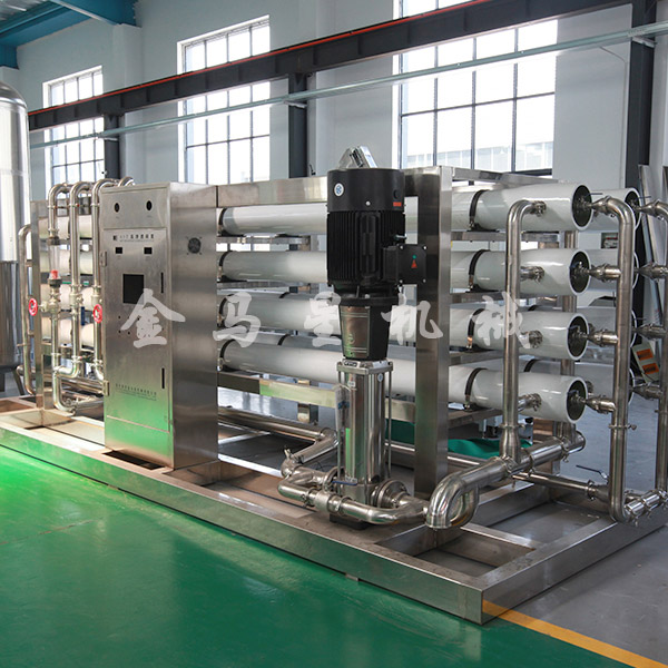 反滲透裝置是利用半滲透膜兩邊的壓力差來凈化鹽水的設備。原理是在高于溶液滲透壓的作用下,依據其他物質不能透過半透膜 而將這些物質和水分離開來。反滲透膜的膜孔徑非常小,因此能夠有效地去除水中的97%溶解鹽類、99%以上的膠體、微生物、有機物等。本系統具有水質好、耗能低、無污染、工藝簡單、操作簡便等優點,是制作純凈水、高純水和超純水的不二選擇。