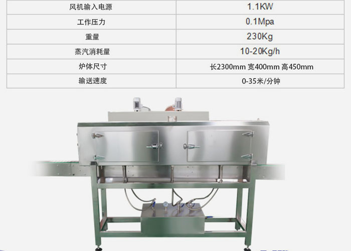 新型的熱蒸汽收縮機(jī)能夠應(yīng)對(duì)不同瓶型進(jìn)行平順收縮。低壓蒸汽鼓的分布和蒸汽噴射的路線都通過無縫管,是一致的。噴嘴被分成三段,并且每一段的高度位置和蒸汽輸出可以進(jìn)行調(diào)節(jié),以達(dá)到良好的收縮效果。整臺(tái)機(jī)器由不銹鋼制成,所包含的保溫層不僅節(jié)約了能量,也遵守了國(guó)際安全標(biāo)準(zhǔn)。不銹鋼接水盤負(fù)責(zé)收集冷凝水。整機(jī)采用防水設(shè)計(jì),操作便捷簡(jiǎn)單,保養(yǎng)費(fèi)用較低。在原有結(jié)構(gòu)上,增加雙層保溫爐,更加節(jié)能。