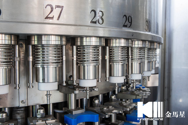 飲用水灌裝機(jī)集沖洗、灌裝、旋蓋于一體,全過程自動化運(yùn)行,主要適用礦泉水、純凈水等不含氣飲料的沖瓶、灌裝、封口連續(xù)作業(yè)。本機(jī)大部分電器系統(tǒng)零件均采用國外優(yōu)良產(chǎn)品,所有與液料接觸的地方均采用優(yōu)質(zhì)的不銹鋼材料制作,主關(guān)鍵部件采用數(shù)控機(jī)床精密加工, 整機(jī)光電檢測各部件的運(yùn)行狀況,無瓶不灌裝,無瓶不送蓋,自動化程度高,操作簡易,具有耐磨、穩(wěn)定、故障率低等特點(diǎn),產(chǎn)品質(zhì)量處于行業(yè)前列,是新老飲料投資者的選擇。