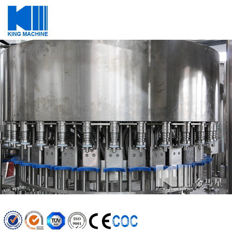 果汁灌裝機同時適用于果汁、茶飲料、功能飲料及果味奶飲料的灌裝。在溫度控制器的幫助下,該機器能夠進行80-95度高溫熱灌裝。本設備采用瓶頸懸掛技術,適用于各種瓶型,跟換瓶型只需調節傳送鏈的高度及出瓶玻璃即可,方便快捷。全機PLC控制變頻調速,自動化程度高,自動控制進液,液位控制準確,無滴漏。與物料接觸部分均為食品級304優質不銹鋼。是飲料廠家的優選產品。
