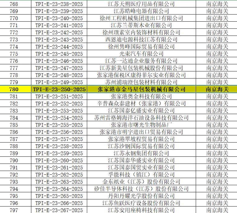 在樣本企業遴選過程中,張家港市金馬星機械制造有限公司成功入選中國海關貿易景氣指數樣本企業名單,成為參與國家外貿運行監測體系的制造企業之一。